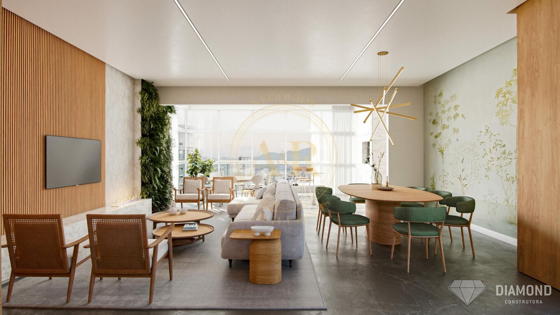 Sala de estar e Sala de Jantar em espaço social gourmet